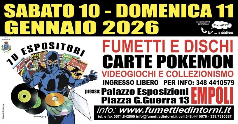 | EMPOLI | 10,11 gennaio | DISCHI -FUMETTI-CARTE | PALAZZO ESPOSIZIONI | A PAGAMENTO |